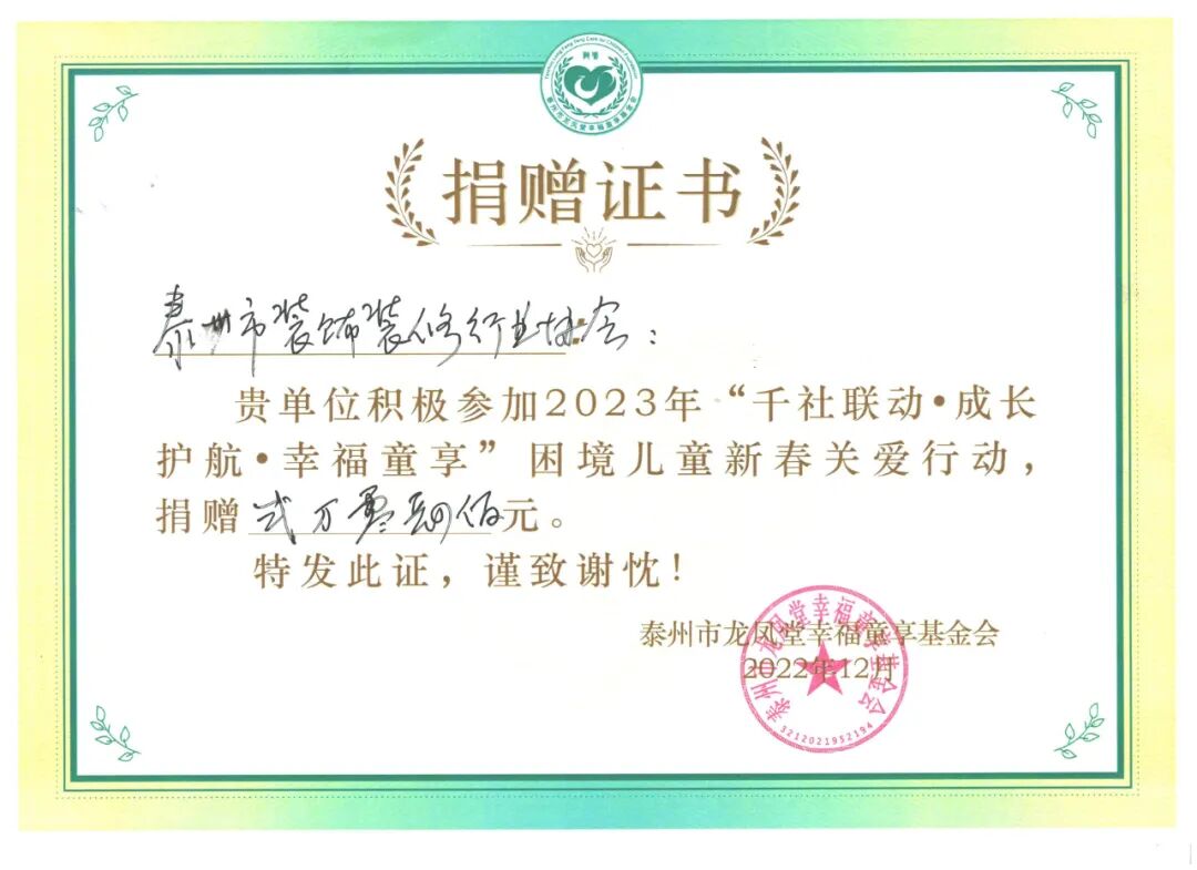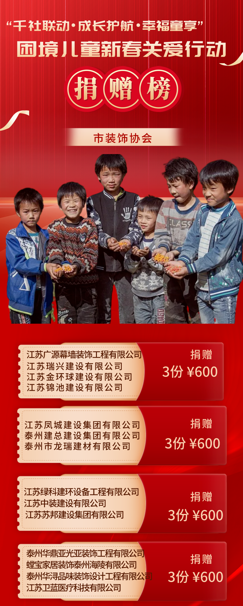泰州市装协会员单位积极参加“千社联动·成长护航·幸福童享”困境儿童成长护航新春关爱行动