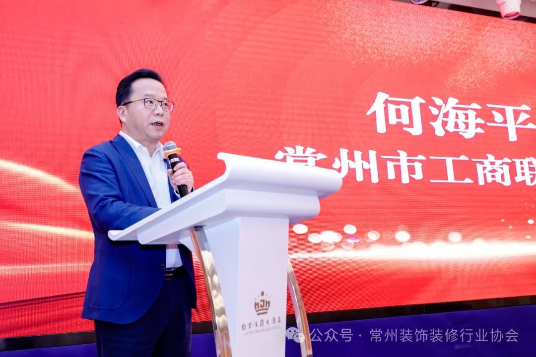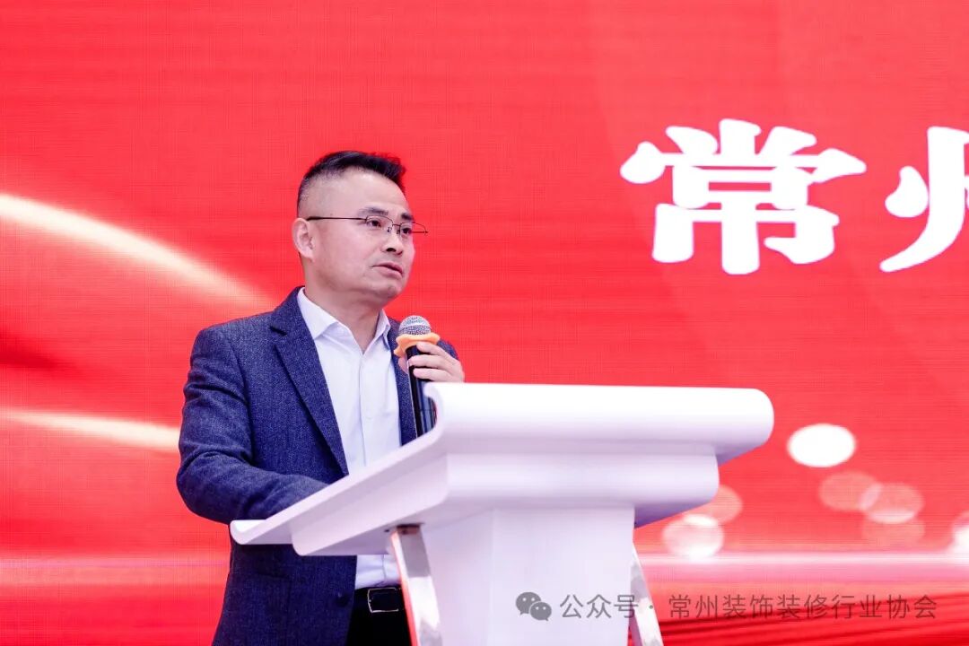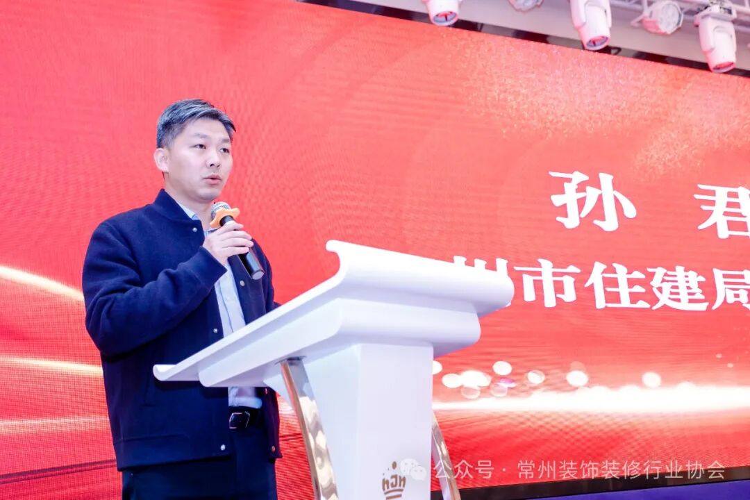 市住建局副局长孙君在大会讲话中代表市住建局向大会的胜利召开和选举产生的新一届理事会、监事会及其领导班子表示热烈祝贺。他表示常州装协在维护和促进我市装饰装修行业的高质量发展上做出了大量积极而有成效的工作,得到了广大企业和社会各界的广泛认可,协会诚信服务平台受到了市政府领导的关注点赞。希望协会以及会员单位增强创新发展的使命感,坚持诚信为本,推动企业改革创新,努力开拓外部市场,践行绿色建造和新型建造方式,推广应用绿色建材,推动建筑装饰行业转型升级高质量发展。